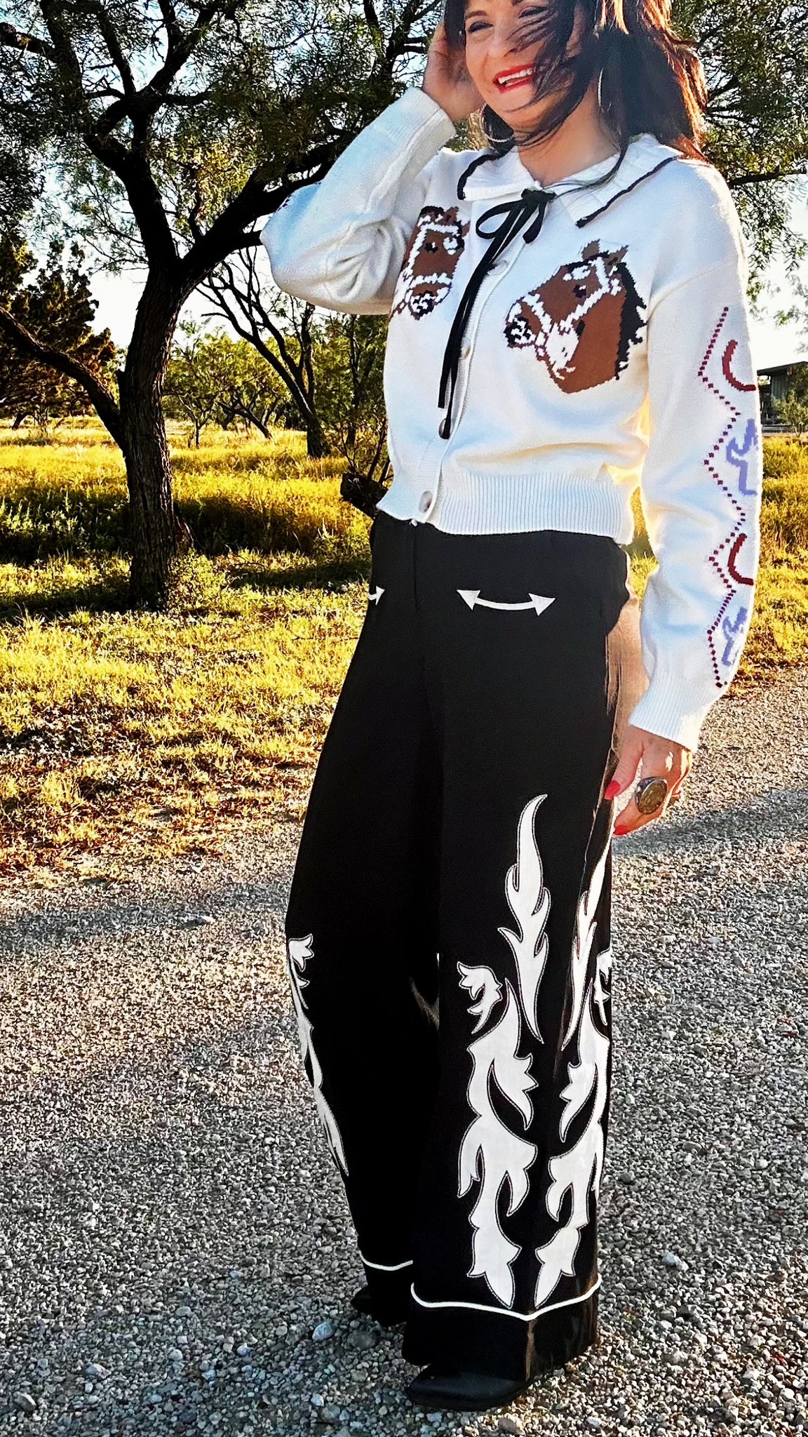 High-rise fit with wide-leg cut for modern cowgirl styling