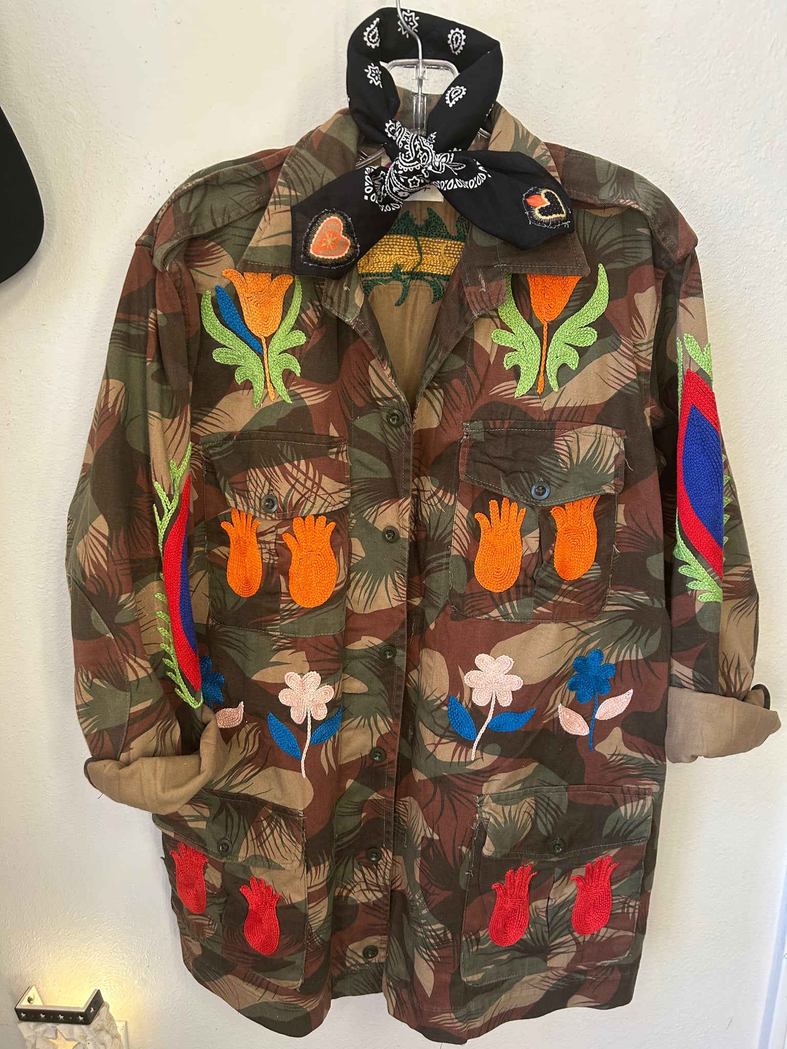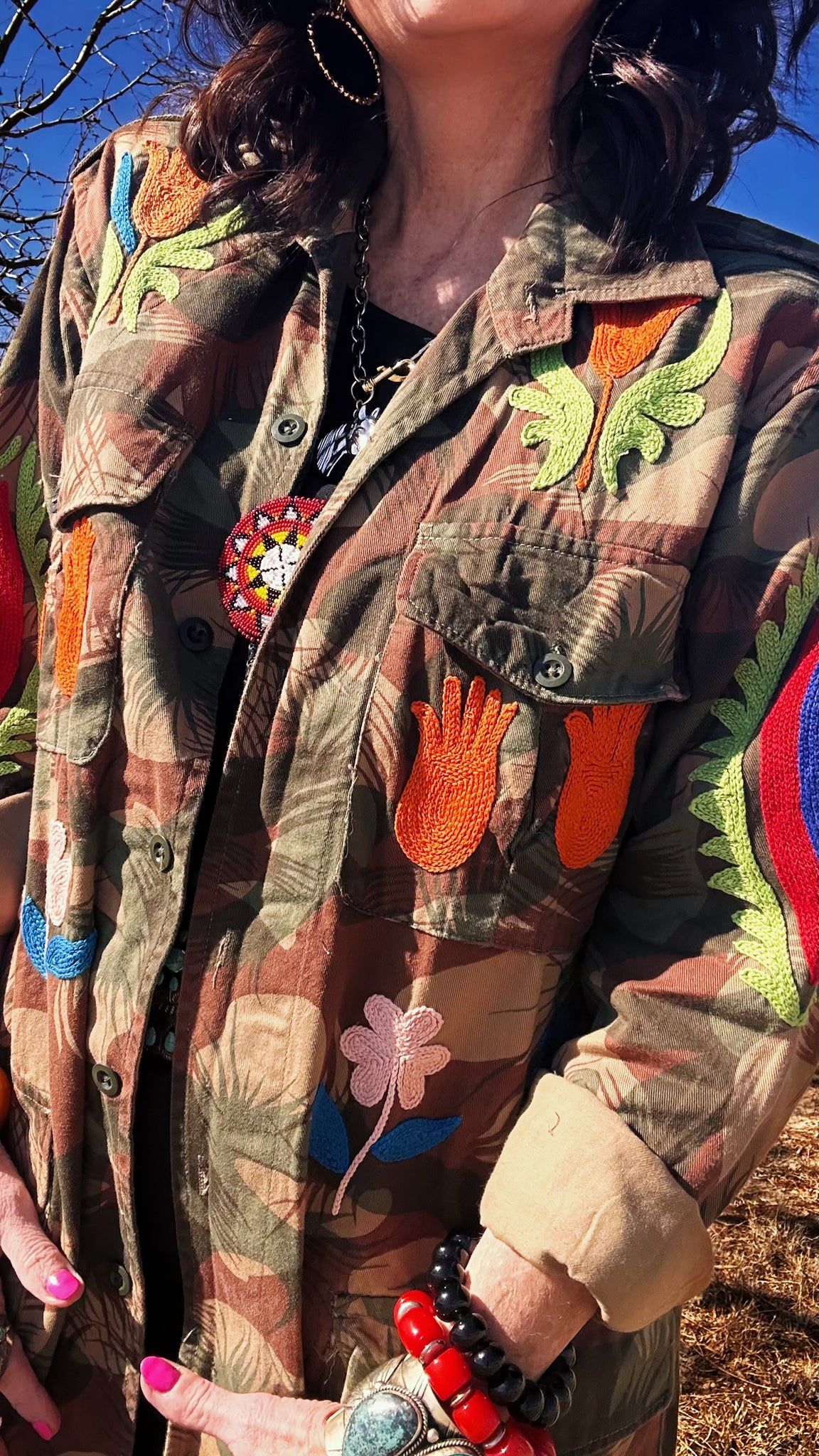 These are iconic vintage Army jackets-hand-embroidered, one-of-a-kind, and designed to be worn everywhere, all year long.