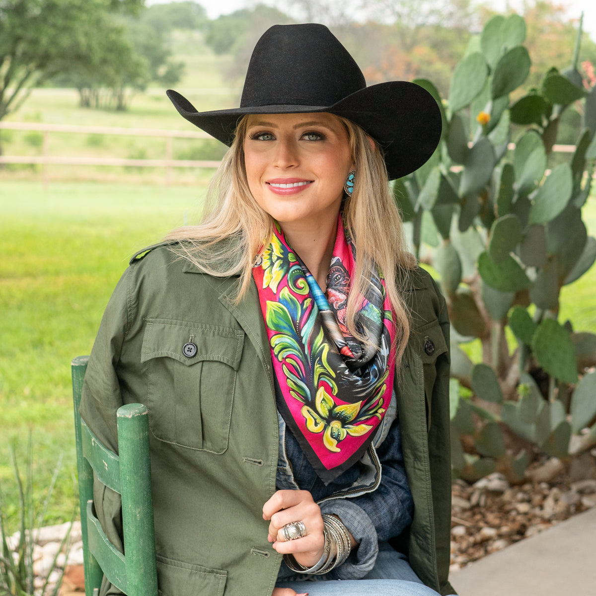 Printed on 14mm satin silk with a rich finish and hand-rolled hem. Collector's edition.